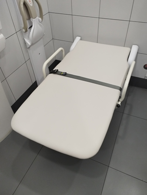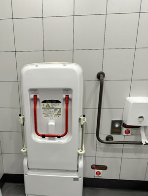 在2號航站樓出發(fā)層北側(cè)無障礙衛(wèi)生間內(nèi),設置了無障礙護理床。輪椅旅客、老年旅客、病人及護理人員可以使用護理床,更換整潔的衣物、紙尿褲、導尿等。