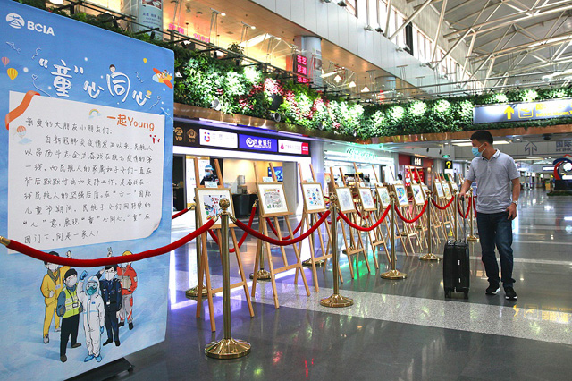 6月1日至2日,首都機場在2號航站樓和3號航站樓內(nèi)舉辦《“童”在國門下》兒童主題畫展。本次展覽共三個主題,分別為:共同戰(zhàn)疫、“童”在國門、“童”言同語,通過線上“云賞”和線下展覽相結(jié)合的方式進行呈現(xiàn)。