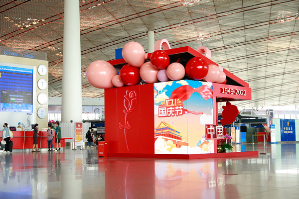 為全面踐行四型機場發(fā)展理念,深化人文機場建設,在國慶節(jié)、重陽節(jié)到來之際,首都機場精心打造“‘禮’贊中華,情寄家國”主題系列節(jié)日景觀,為旅客送上溫馨的節(jié)日祝福。