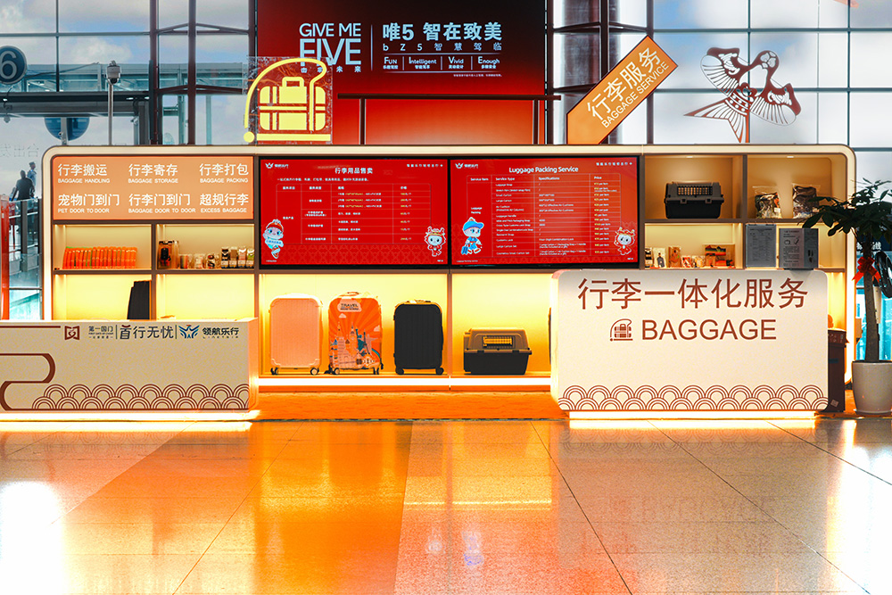 為助力更多旅客“徒手出行”,首都機(jī)場(chǎng)創(chuàng)新行李服務(wù)模式,于近期推出“首行無憂·行李一體化”服務(wù)產(chǎn)品?,F(xiàn)在,首都機(jī)場(chǎng)航站樓內(nèi)設(shè)置有7處服務(wù)柜臺(tái),均可一站式辦理行李打包、行李寄存、行李搬運(yùn)、行李“門到門”,更支持寵物“門到門”、大件行李運(yùn)送等特色服務(wù)。