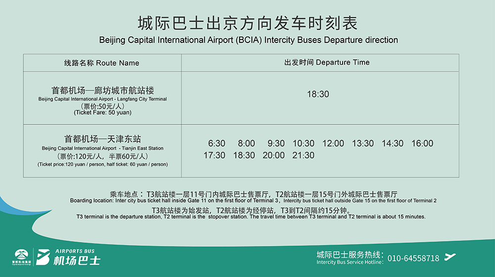 首都機(jī)場(chǎng)乘車站點(diǎn):首都機(jī)場(chǎng)3號(hào)航站樓一層11號(hào)門內(nèi)、首都機(jī)場(chǎng)2號(hào)航站樓一層15號(hào)門外城際巴士安檢售票亭。