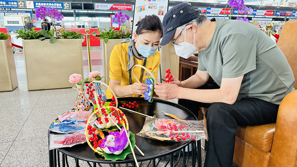 今年中秋喜逢國(guó)慶,為增添節(jié)日氛圍,弘揚(yáng)中華傳統(tǒng)文化,首都機(jī)場(chǎng)在2號(hào)航站樓、3號(hào)航站樓愛心服務(wù)專區(qū)設(shè)置了中秋節(jié)主題活動(dòng),旅客可現(xiàn)場(chǎng)參與花燈、掛飾、琉璃花瓶等工藝品的制作,把來自首都機(jī)場(chǎng)的節(jié)日祝福帶回家。