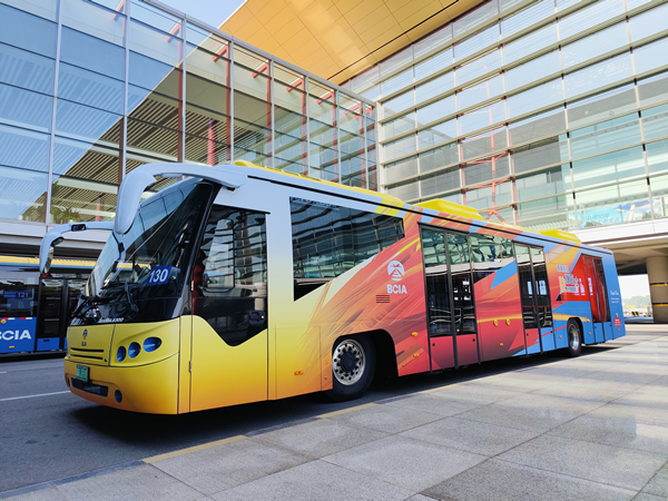 近日,首都機場空側(cè)樓間旅客快捷巴士(以下簡稱“快捷巴士”)上新了“火鳳凰”外觀,帶有新涂裝的巴士已正式投入首都機場3號航站樓D區(qū)國內(nèi)進港航班和西區(qū)衛(wèi)星廳的日常旅客運輸工作。通過對巴士車身進行“換裝”,并在車身、車窗等醒目位置突出顯示“快捷巴士”“RapidBus”等中英文字樣,首都機場力圖打造全新快捷巴士形象,為旅客提供辨識度更高的空側(cè)交通服務(wù)。據(jù)悉,此次新噴涂的“火鳳凰”圖樣設(shè)計來源于2008年北京奧運會期間3號航站樓快捷小火車的車身形象,寓意“鳳凰展翅翱翔”。將“火鳳凰”形象再次用于快捷巴士車身,是首都機場對全心服務(wù)旅客的奧運精神的再次詮釋。(黃玲穎攝影報道)