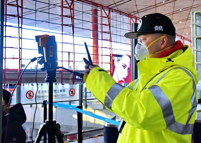 1月24日,大年三十,是疫情防控工作進行的第4天。早上8時,王岳手機收到“迅速落實進港旅客測溫點”的工作任務,簡簡單單跟愛人、孩子交代了一下,他便急忙趕回樓內。“時間緊、任務重、點位多,同時又要保證旅客流程點位的合理,是這次現(xiàn)場布置最大的困難?!?雖然平時已將旅客進出港流程熟記于心,但為了確保測溫點位的設置準確高效,不遺漏任何一名旅客,王岳再一次前往旅客現(xiàn)場,一個流程一個流程地過,一個點位一個點位地看,最終在3座航站樓、170萬平米的范圍內選取了12個最佳測溫設置點。隨后,他緊急協(xié)調相關模塊設置臨時電源、醫(yī)療人員的物資配備,以及桌椅、屏風、拉帶等物品。